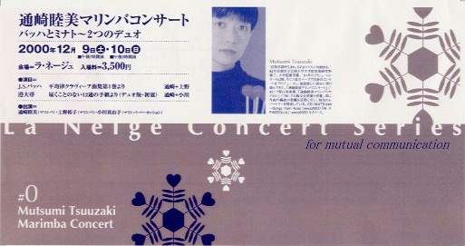 実は、ラ・ネージュの企画するコンサートは、5年前にも一度通崎を招いて開 かれていたらしい。ラ・ネージュの四方氏が、通崎の演奏活動とラ・ネージュの 企画の方向性に共感するものを見たからだという。