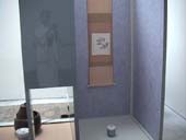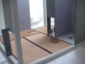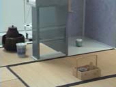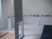 「面白いことをやろう。」と、鈴木さんから色々とご提案いただき、実現可能な範囲でラ・ネージュならでは・・の面白い趣向になればということで、久し振りに組み立て式茶室*を組立てて、展示するだけでなく、お茶席を設け、実際に、お茶碗の手触りや口当たり、お菓子気の感触などを感じていただける場も設けました。