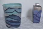 彩釉山文様水指 彩釉山文様水指 青磁染付山文様水指 青磁染付渚文壷