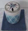 床机に置かれたお干菓子。最終日はお客様からいただいた手作りの落雁(このサイズでは白と薄セルリアンブルーの美しさが判らないのが残念。形も綺麗。)と、今月のおすすめのワインの金平糖。
