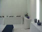 入ったところから左手にある茶室の様子。床の間には鈴木さんにお持ちいただいた、富本憲吉さんの甘茶の軸。陶器の展覧会なので、漆器の香合の代わりに香炉を置き、白檀を焚いた。香炉はもちろん、鈴木さんの作。