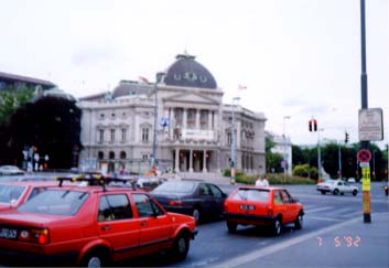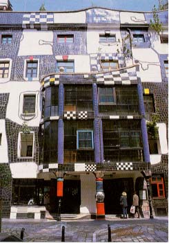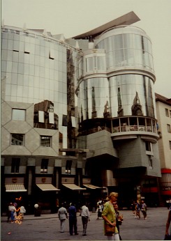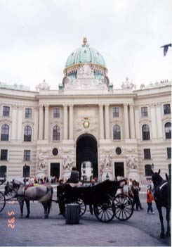 左:当時ハンス・ホラインの最新作だった、商業ビル。 右:王宮の入り口。馬車が見事にマッチ。 |