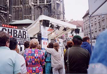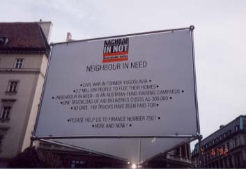 左右とも:ユーゴスラビア救済のためのチャリティー・イベント。右の「NEIGHBOUR IN NEED」の掛け声が凄い。 |
