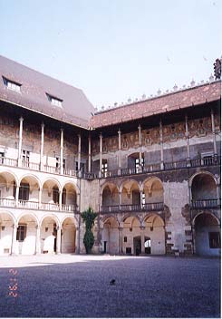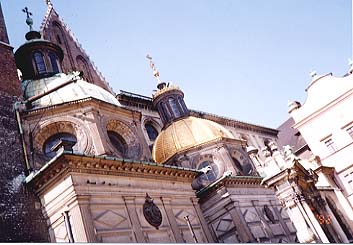 左:先程のカテドラルの祭壇の前にある、高位の聖職者の座るところ。このカテドラルでは金の色の美しさが印象的。 右:これはWawel城を外から見たところ。