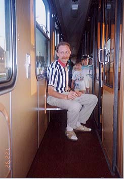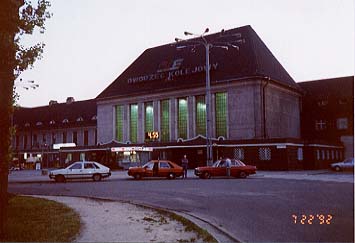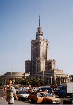 右:コンパートメントの様子。なかなか快適。 右:ワルシャワに着いて、最初に目に付いた、「文化科学宮殿」。旧ソ連が建てた建物で、独特の威容を誇るが、ポーランドの人は好きではないようだ。 |