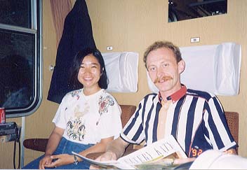左:私達が乗る電車の表示。 右:いよいよ乗り込む。 |