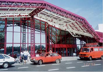 左:ワルシャワ国際空港の外観。 右:日本語版まであった、アウシュビッツ収容所のパンフレット。翻訳は「グリーンピース」がやっている。 |