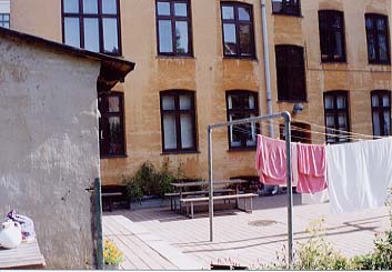 左:上の続き。トルベン達のフラットのご近所。 右:バーベキューを焼いているところ。ネタ(?)が鮭なのが北欧っぽい? |