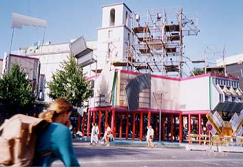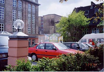 左:街中にあった何かのイベント会場。この街には似合わなかった。(と、トルベンも言っていた。) 右:装飾がレースペーパーのように繊細だった建物。 |