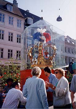 左右とも:たまたまこの年が女王夫妻の銀婚式の年だったため、街のあちこちに国中のアーティストが製作した王冠をモチーフにしたオブジェが置かれていた。 私のお気に入りは左のもの。 |