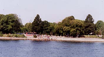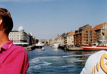 左:遠ざかるコペンハーゲン。 右:人だかりがしているところに、この写真の大きさでは見えないのが、有名な人魚姫の像。 |