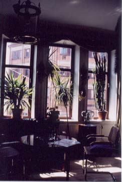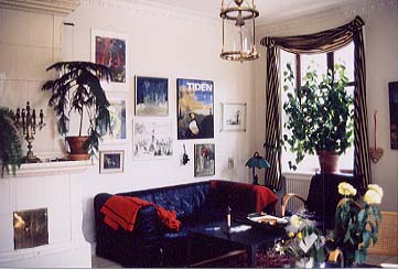 左:ハンサムな運転手をそろえてあるというタクシー会社のタクシーはボルボ。 右:美しいパトリックのフラットのインテリア。 |