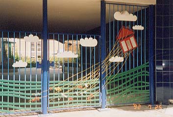 左右とも:先程の門の中にある共同住宅の建物。楽しい雰囲気。ちょっと幼稚園っぽい。 |