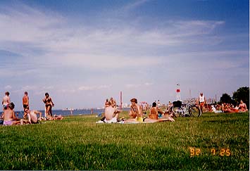 左右とも:コペンハーゲン以上に芝生が続くマルメの浜辺。 | |