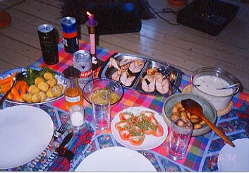 左右とも:みんなで作ったバルセロナオリンピック用のTVディナー。右はおいしくない顔で写してみる。 | |