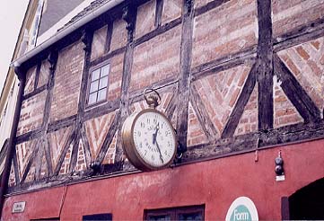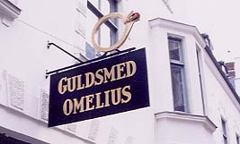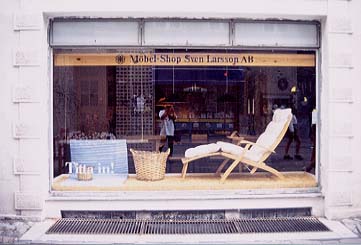 左:ここにもシンボル看板。これは宝石屋さん。 右:素敵な北欧の家具の店。 |