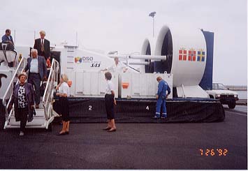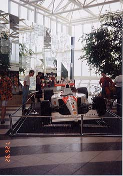 左:上右に同じく、ホバークラフト。 右:その時、コペンハーゲン空港にあったセナが乗っていた(?!)マクラーレン・ホンダ。レプリカか? |