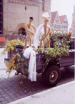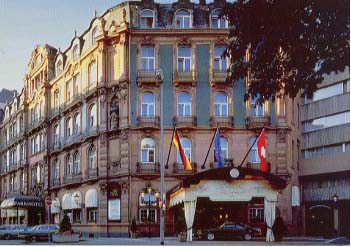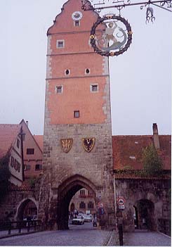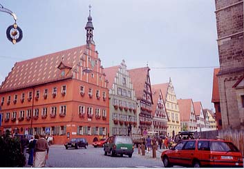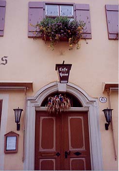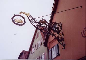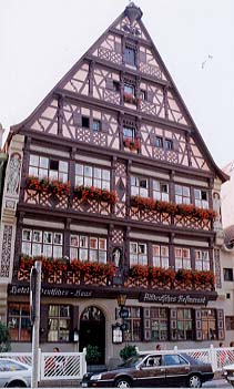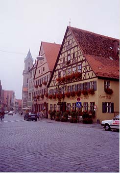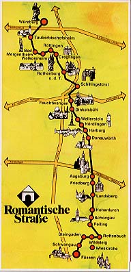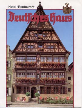 左:ロマンチック街道の地図。 右:日本からファックスで直接予約して、ディンケルスビュールで泊まった、ドイチェスハウス。 |