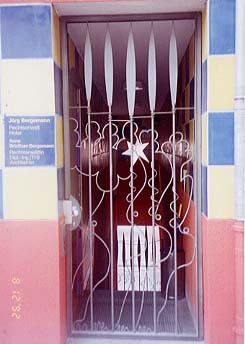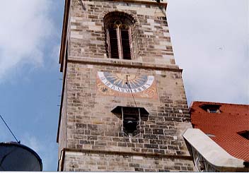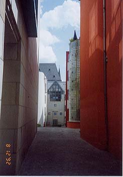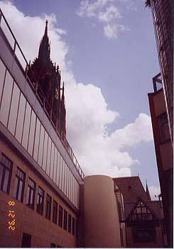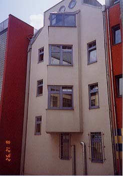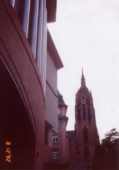 左:塔のうえの窓の下に、日時計らしいものが・・・。 右:懐かしいドイチェス・ハウス。 |