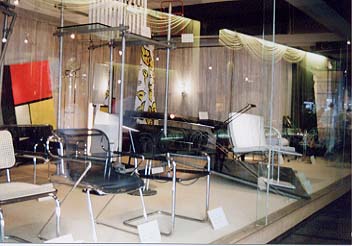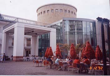 左:ホテルのルームサービスメニューでようやくありついた、ターターステーキ。 右:ハンス・ホラインのデザインの、近代美術館。 |