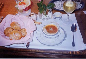 左:疲れて食欲がないから・・と、いいつつも、ワインは忘れない。 右:なかなかアットホームだった、ホテル・パークス。 |