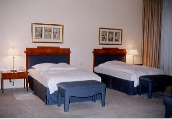 左:部屋数の少なさで選んだミュンヘンのホテル・ラファエルの素晴らしいツイン・ルーム。 | |