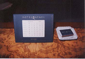 左:ホテル・オリジナルグッズのカレンダーも置いてある。 右:キルステンからメッセージが。 |