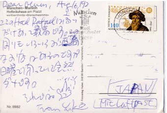 一度に数十枚書いたことも珍しくなかったので、超乱筆ですが、切手や図柄にお国柄を感じてもらえると思います。
